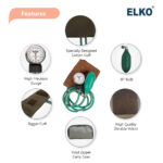 ELKO Sphygmomanometer Aneroid Type includes a carry bag and a comfortable cuff. ELKO Aneroid BP is completely safe to use as it does not contain any mercury. Our device is designed to maintain durability even after daily heavy use. All it’s attachments are crack-resistant, non-sticking and high-density latex-free for a better experience. Also it is easy to use, you just need to squeeze the bulb to inflate the cuff around your upper arm and then you can read the gauge to find your blood pressure. ELKO Sphygmomanometers compact, lightweight and easy to carry around while traveling from one place to another without missing the accessories. Also, no batteries are needed when operating with our aneroid sphygmomanometer.