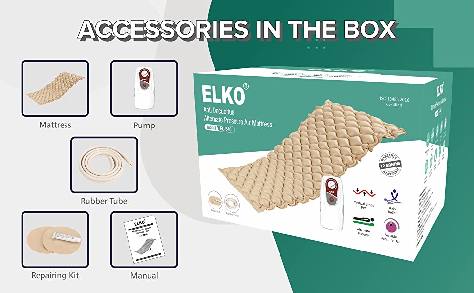 ELKO EL-540 Anti Decubitus Bubble Air Mattress for Patients Bed Sore | Alternate Pressure Air Mattress, Inflatable Air Bed for Patients | Helps in Prevention of Bed Sores